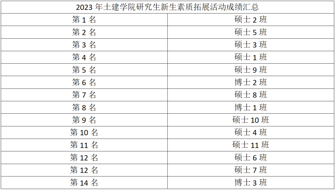 无论成绩如何,这次活动中每个班级的同学们都展现了对本次素拓活动的热情,也饱含了同学们对研究生生活的满满斗志、热烈期待与奋发追求!
