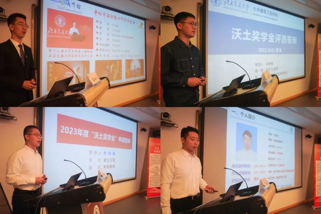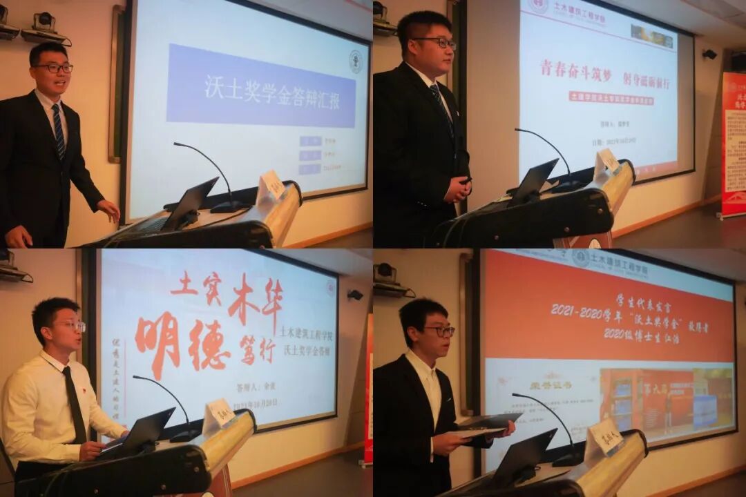四名博士生、三名硕士生候选人依次答辩,围绕学术科研、综合能力、社会服务等方面进行介绍,经评委打分,评选出5名奖学金获得者。20级博士生江浩代表首届沃土奖学金获得者表达了感恩之情。