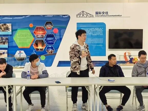 在参观实践环节结束以后,在展览厅举办了师生党员交流会。在交流会上,实验中心教师党支部李波老师通过分享其带领团队在为科技冬奥服务的故事,回顾了风洞辅助训练项目的缘起,在二七体育基地开展冰上、雪上、冰橇等运动项目的科技助力冬奥,团队摸索石头过河的艰辛历程,最终成功服务几千次运动员检测、冬奥运场馆建设、冬奥会开幕式等一系列项目。建工系博士生第二党支部预备党员张渊召则通过其在参与科技冬奥过程中的点滴趣事,谈与冬奥会的“科技缘分”,感慨“有幸参与奥运盛会,真的很自豪,与团队一起努力奋斗的样子也很帅,看到自己服务过的运动员取得好成绩,内心更是有着难以言表的激动”。建工系博士生第二党支部副书记钱孝文向大家讲述此次参观学习活动的收获,并代表支部回顾了在服务北京2022冬奥会、传承冬奥精神落实二十大精神方面支部所做的一系列工作。