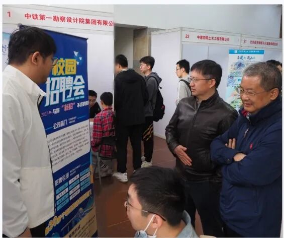 为进一步促进土建毕业生更高质量就业,2023年4月20日下午,就业创业指导中心主办、土建学院承办的“研职担当,砼筑未来” 科研院所就业/实习专场双选会在天佑会堂举行。本次双选会吸引了来自北京、天津、山东、浙江等省市的39家业内知名企业单位参会,为应届毕业生提供了大量就业岗位和实习机会。就创中心主任张博、副主任梁英、土建学院党委书记刘东平、院长高亮、副书记副院长白雁等现场走访用人单位,积极开展推介和调研工作。