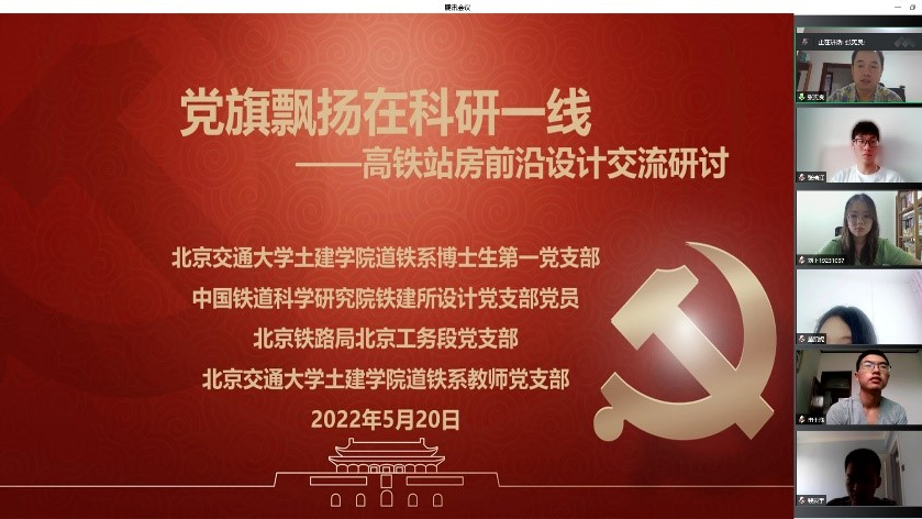 支部深入思考博士生党员队伍的建设目标,围绕“党建引领科研”的建设理念,开展本次以“请党放心,强国有我”为主题的红色“1+1”活动,与铁科院铁建所设计党支部联合开展活动。活动沿着从高速铁路“科研”到“设计”、从“设计”到“施工”的活动思路,加强博士生党员“理论与实践相结合”开展科研的能力,力求个人科研成果助力国家高铁发展。