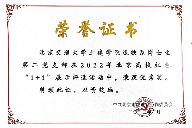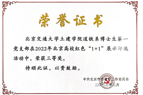 近日,北京市委教育工委公布2022年北京高校红色“1+1”示范活动评审结果。土建学院两个研究生党支部从全市1204个支部中突出重围,获评示范活动。
