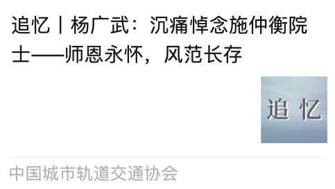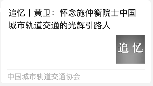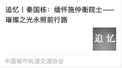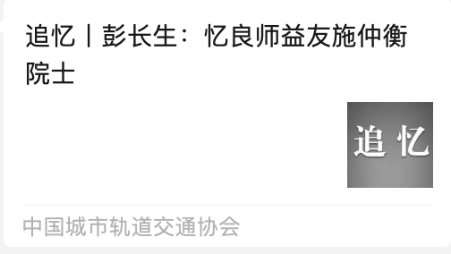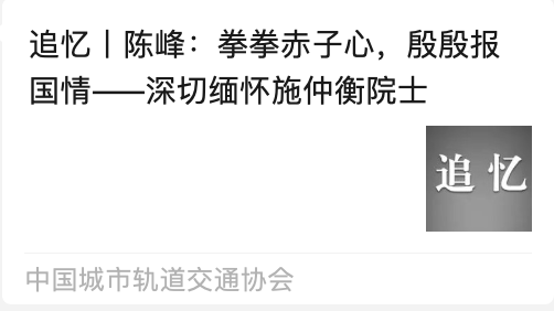 施仲衡院士一生系于城轨,一生追梦城轨。以技术创新为刃,破解难题,为国家科技工程的技术宝库增添城轨智慧;凭标准制定为规,引领规范,为国家科技工程标准化建设提供城轨参考;借行业治理为策,优化体系,让城轨在国家科技工程统筹布局里稳健推进;靠人才培育为基,输送力量,给国家科技工程的持续发展筑牢人才根基。