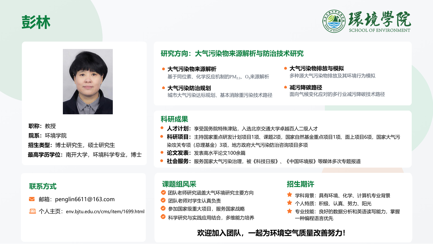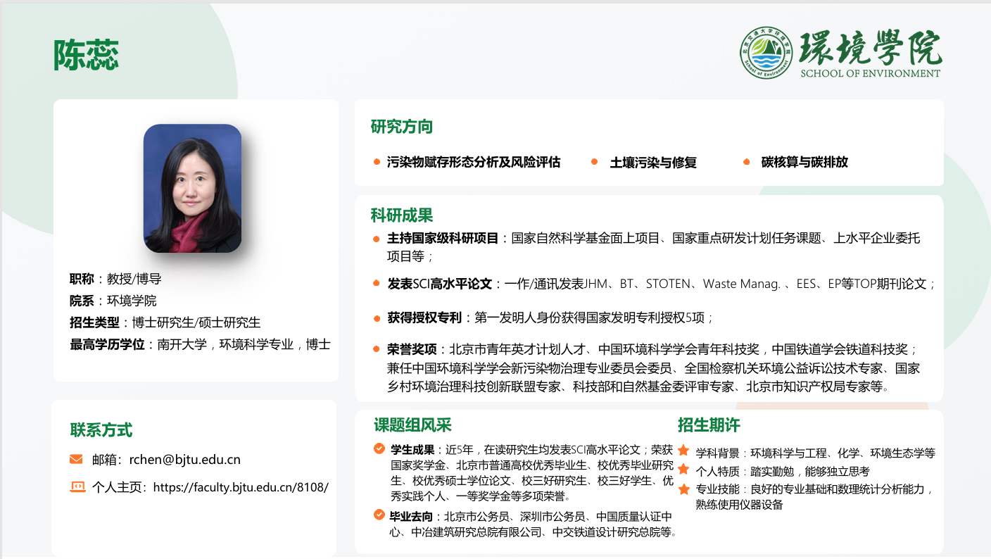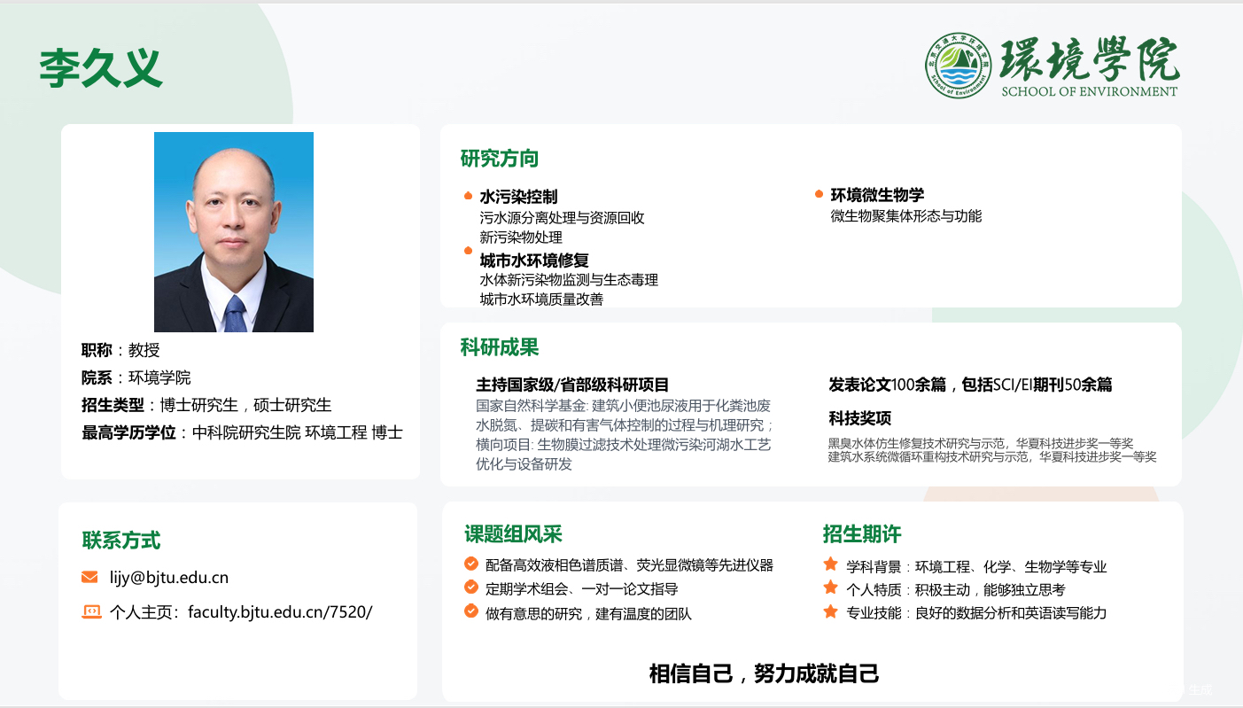 【定期更新】环境学院博士研究生导师介绍