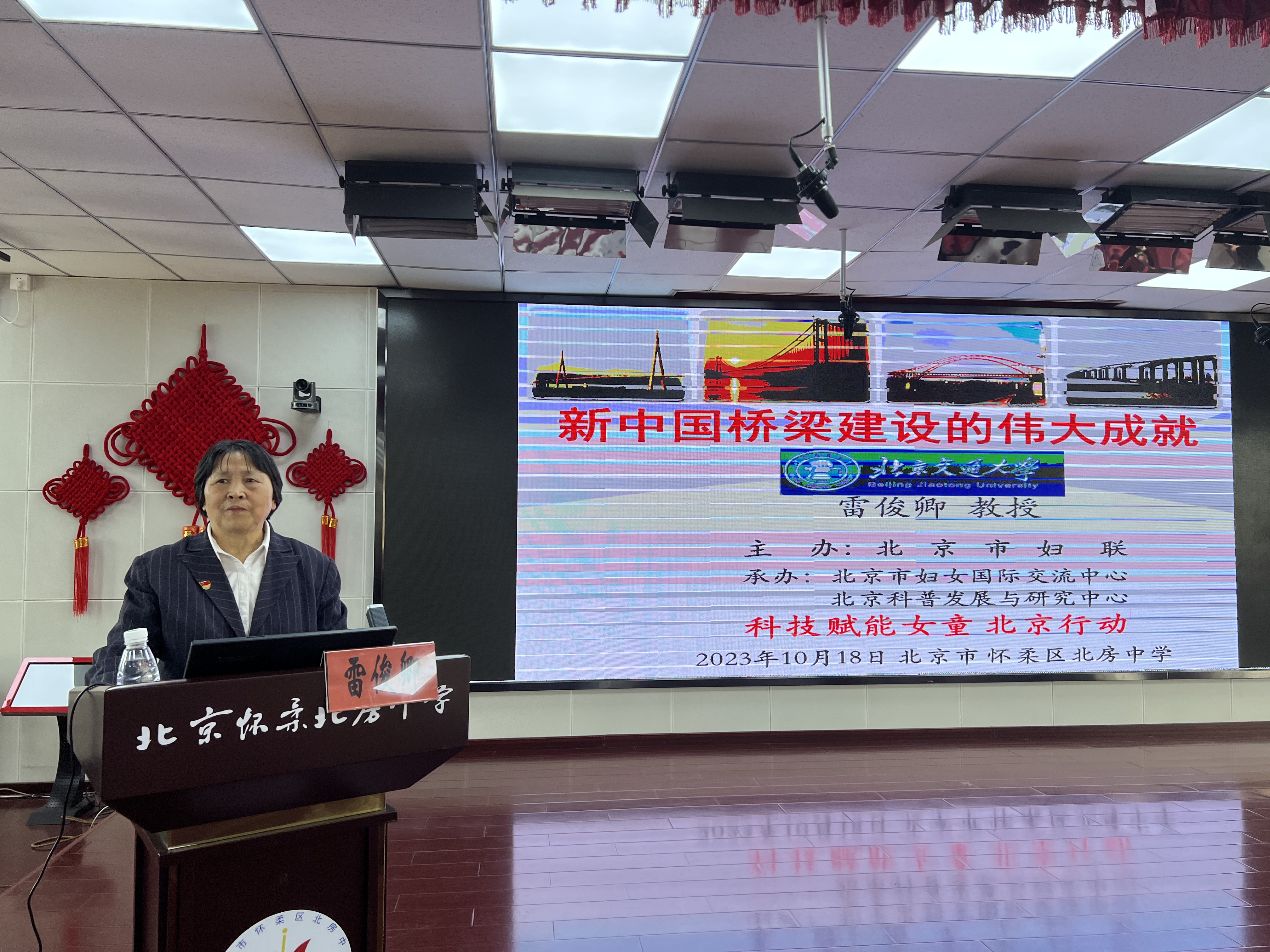 2023年10月18日,星空电竞app2026最新版土木建筑工程学院雷俊卿教授应北房中学科技赋能女童项目组师生的邀请,给孩子们做了题为《新中国桥梁建设的伟大成就》讲座。雷教授通过丰富的桥梁设计建设案例,深入浅出地解释了“一桥飞架南北,天堑变通途”的科学原理及建造过程,为同学们描绘了一幅盛大的中国桥梁蓝图,书写新中国桥梁建设的成就序章。