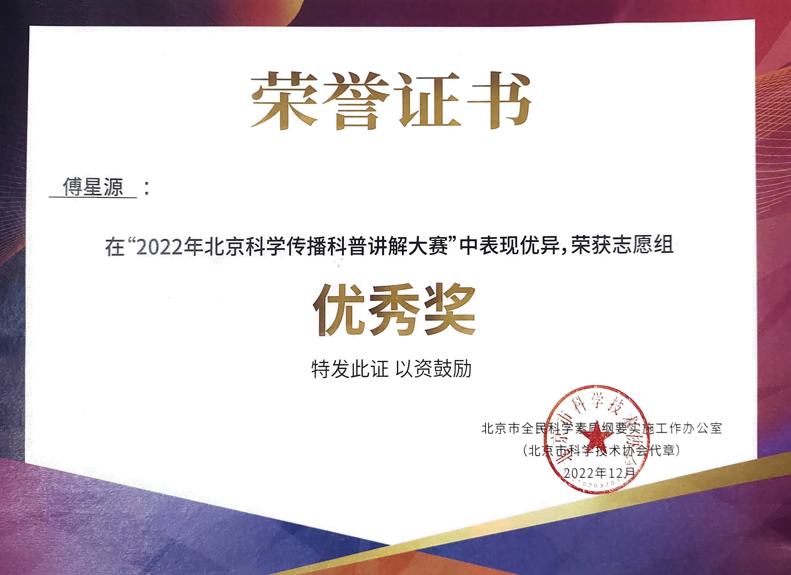 傅星源-获2022北京科学传播科普大赛志愿组优秀奖