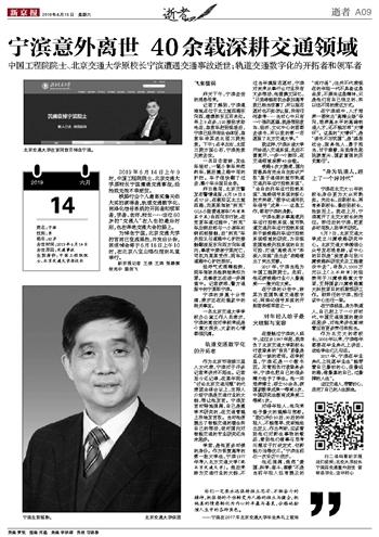 在宁滨的讣告中,称其为我国轨道交通数字化、网络化信号系统的开拓者和领军者之一。