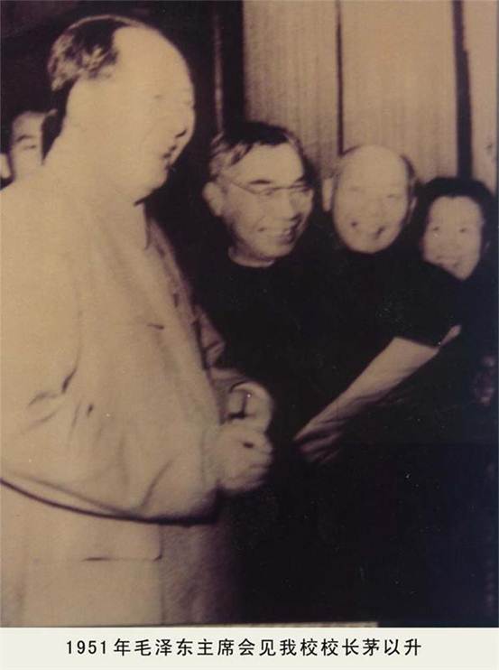 1951年1月1日,中南海勤政殿新年团拜并聚餐会上,毛主席亲切接见茅以升校长。