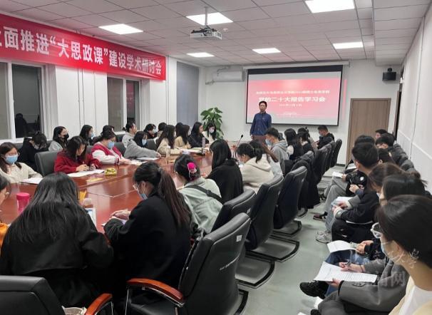 党的二十大会议召开之际,马克思主义学院全体师生认真收听收看党的二十大开幕会并进行了热烈的讨论和学习。学院党委理论学习中心组第一时间开展了党的二十大精神专题学习,并把学习宣传贯彻党的二十大精神作为学院当前和今后一个时期的首要政治任务。