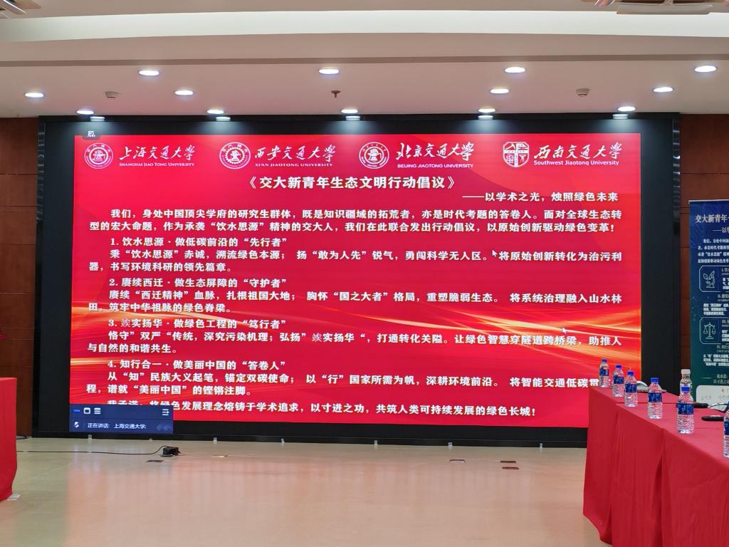 恰逢四所交通大学迎接130周年校庆的荣光时刻,又值“绿水青山就是金山银山”理念提出20周年的重要节点,四所交大环境学科相关学院决定启动以“聚‘交’青年担使命,联学‘两山’启新程”为主题的系列活动,深度传承四所交通大学百卅薪火中“饮水思源、爱国荣校”的精神基因,扎实推动“两山”理念在青年群体中入脑入心、见行见效,引导党员青年将个人理想融入国家生态文明建设和经济社会绿色转型大局,凝聚跨校协同、勇担时代使命的青春力量。本次活动为启动仪式及系列活动的第一部分“理论联学”。