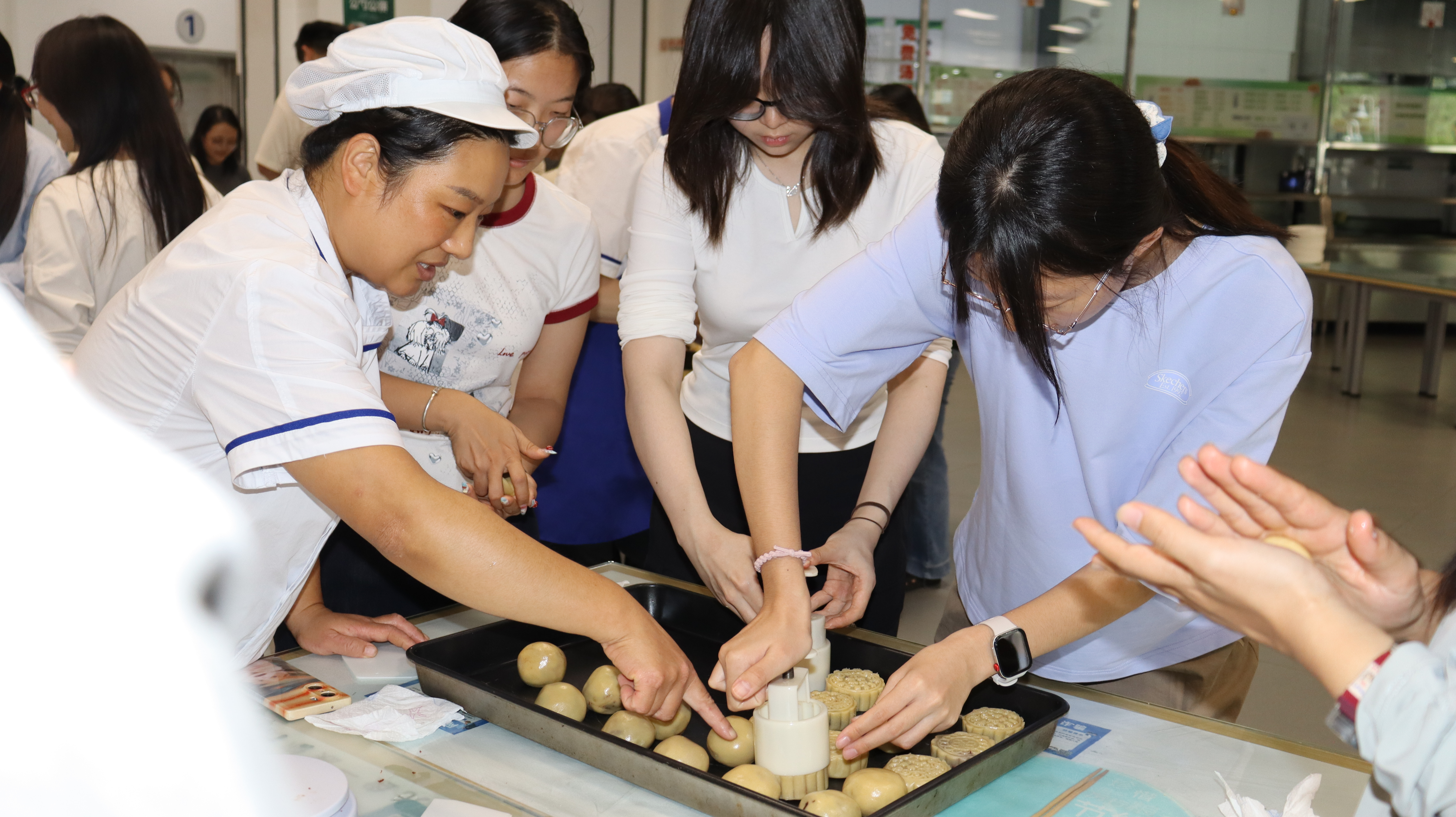活动伊始,后勤集团饮食中心的工作人员带领同学们亲手制作月饼。大家在揉面、压模的过程中体会传统技艺,在互动协作中增进感情,把对中秋的祝愿与生活的热爱融入到一块块精致的月饼中。