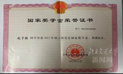 因科研成果突出,赵子颖获评2022年硕士国家奖学金