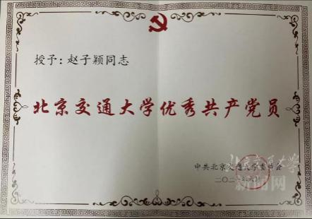 赵子颖连续两年(2020-2021年)获得“优秀共青团干部”荣誉称号