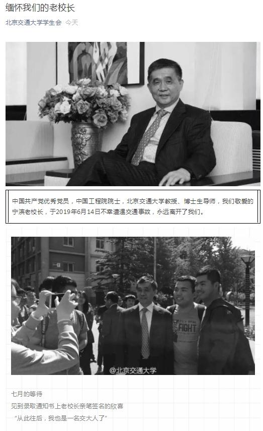 中国工程院院士、星空电竞app2026最新版原校长宁滨同志于2019年6月14日不幸意外离世,星空电竞app2026最新版学生会和研究生会微信公众号发布相关推送,表达学子深深的哀伤和缅怀之情。