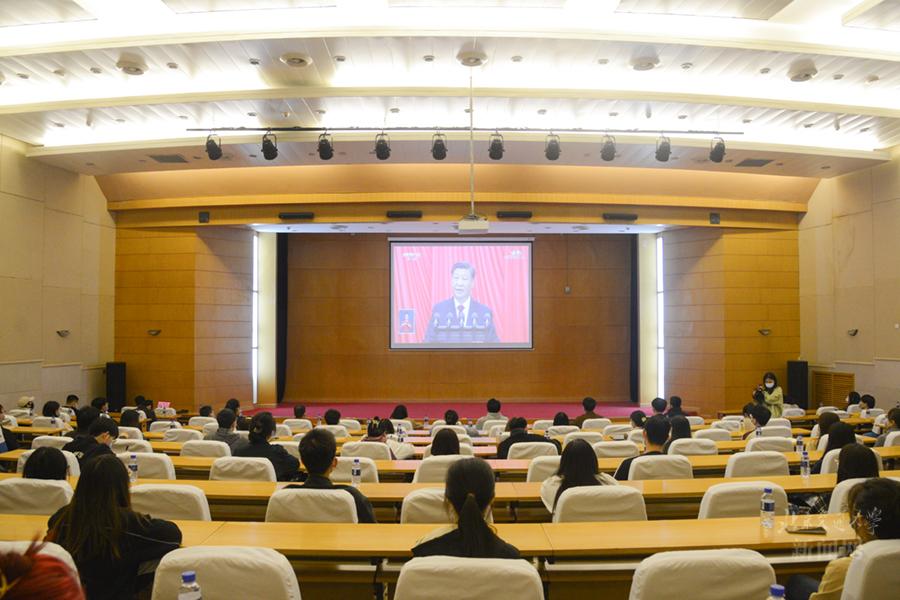 各二级组织发挥党委理论学习中心组、党支部、团支部、系(所)等作用,组织干部师生在校内40余个分会场以及线上进行收听收看,将其作为一次重要的主题教育。