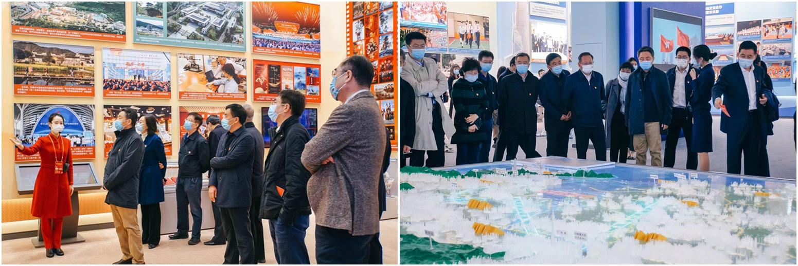 中心组成员先后参观了序厅、中央综合展区、地方展区、展望展区、室外展区和互动展区等6个展区。一件件实物模型、一段段生动视频、一幅幅图片图表,生动展示着新时代十年来的非凡成就。所到之处,大家不时驻足观看,认真听取讲解,相互交流感悟,共同回顾党和国家走过的非凡十年,感受在波澜壮阔的伟大历史变革中取得的历史性成就。