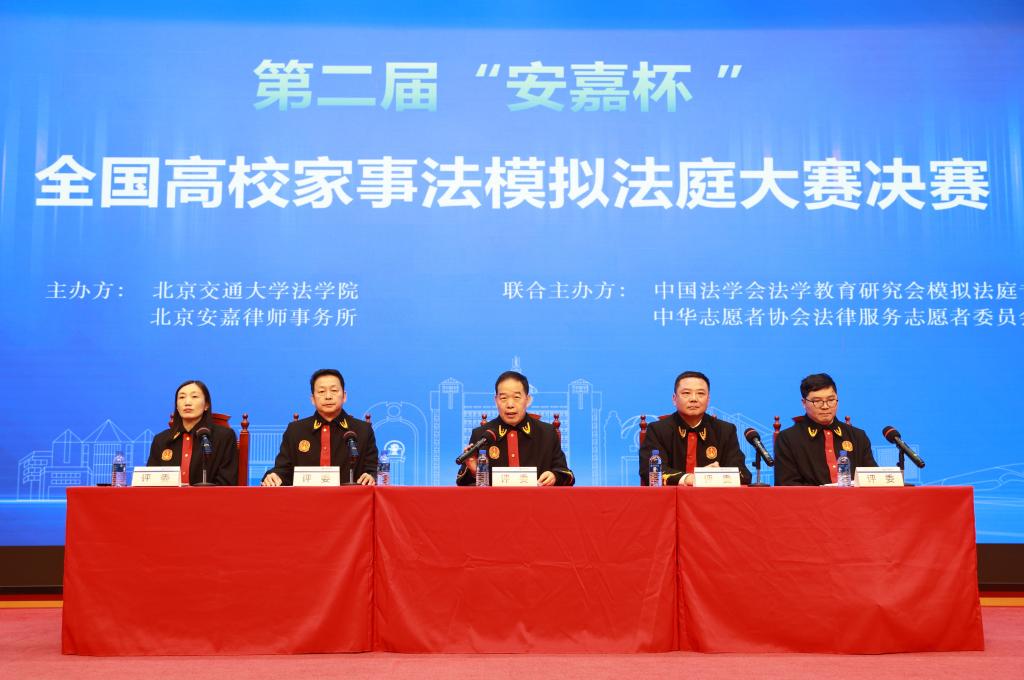 决赛合议庭由北京市第二中级人民法院民事审判第二庭庭长、审判委员会委员、二级高级法官肖荣远担任审判长,北京市西城区人民法院党组成员、副院长吕江,中国法学会婚姻家庭法学研究会副秘书长、中央民族大学法学院雷明光教授,中南财经政法大学法学院副院长刘征峰教授,北京安嘉律师事务所主任赵丽担任审判员。