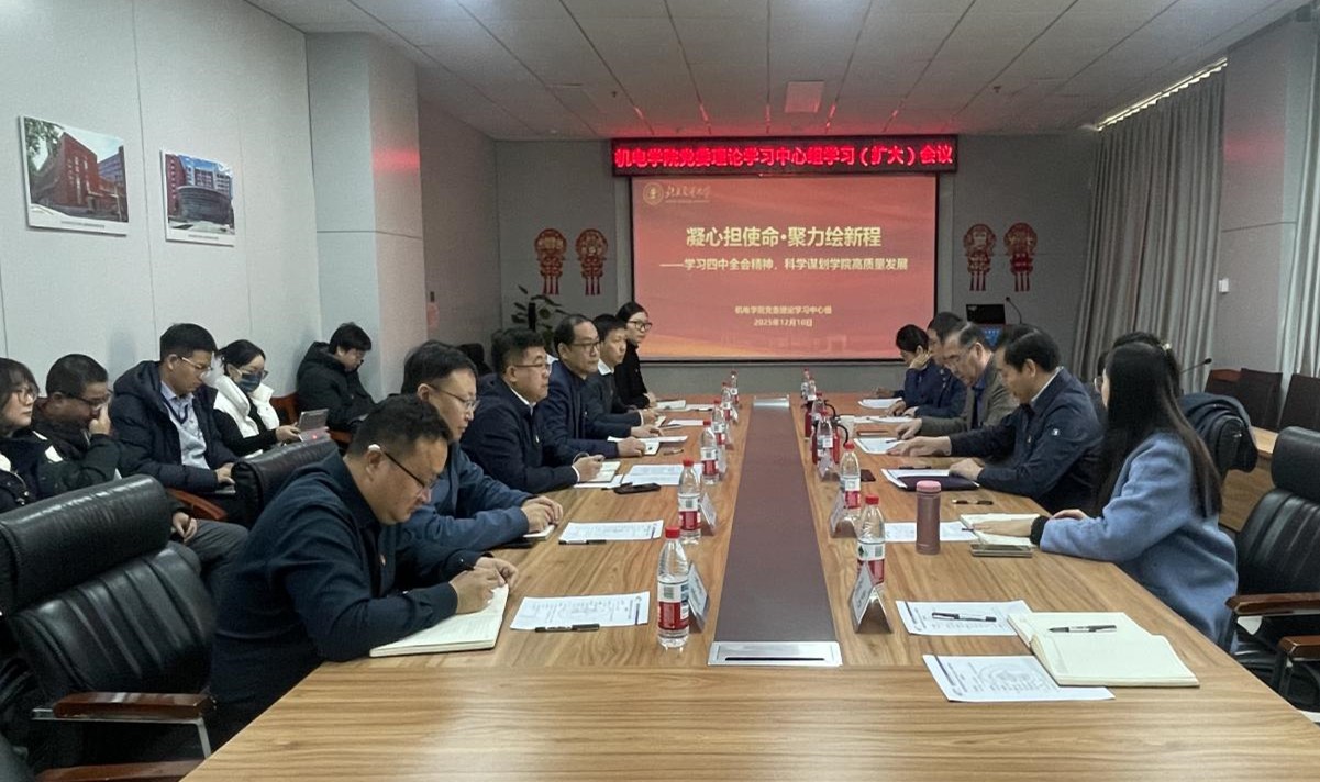 12月10日下午,机电学院党委召开理论学习中心组学习(扩大)会议,专题学习二十届四中全会精神,校党委副书记姚念龙巡听指导,校党委宣传部汤嫣列席会议,学院领导班子、党委委员、各系(中心)主任、支部书记参加会议。会议由学院党委书记魏旺强主持。