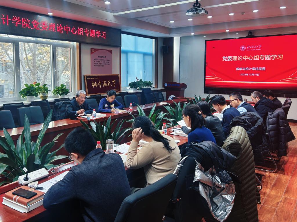 2025年12月10日上午,数学与统计学院党委理论学习中心组专题学习《习近平谈治国理政》第五卷。校党委常委、副校长高亮到会巡听指导,数学与统计学院党委理论学习中心组全体成员参加会议,会议由学院党委书记王烜主持。