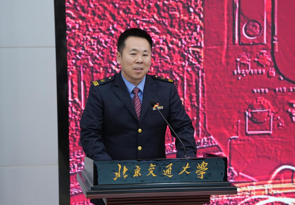 “毛泽东号”机车组第十二任司机长、“最美铁路人”刘钰峰深情回顾了“毛泽东号”1946年诞生以来,跨越三个时代、安全走行1285万公里的红色传承。他结合自身从向往机车到执掌闸把,带领团队攻克机车换型、货改客等技术难题的奋斗经历,向与会师生传递“奋斗者最幸福”的初心信念,生动诠释了新时代交通人的工匠精神与责任担当。