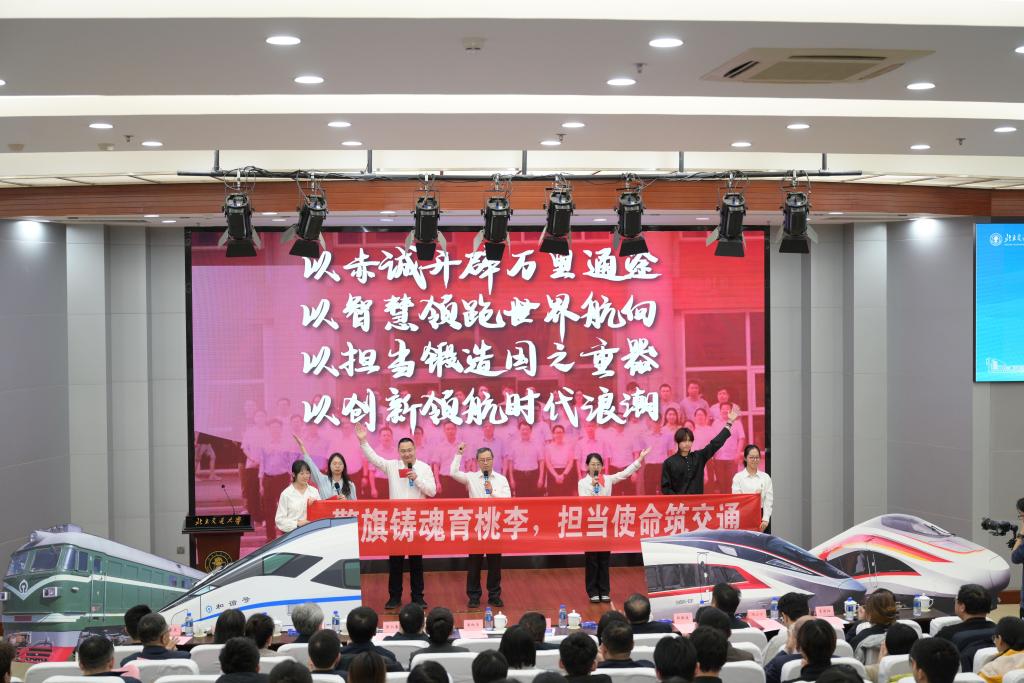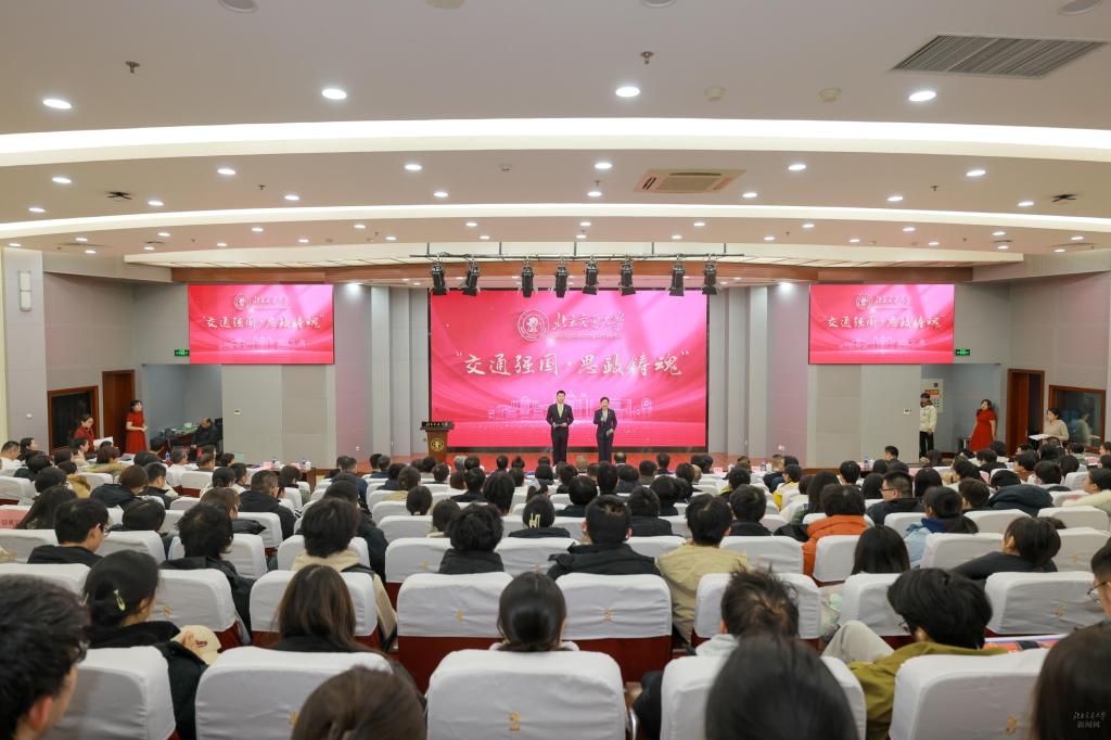 2025年12月25日,我校“交通强国”特色大思政课推广展示活动在机械楼二层学术报告厅举行。校党委书记陈子季,党委副书记文海涛,党委常委、副校长李国岫,党委常委、宣传部长蓝晓霞,教育部社科司教学与出版处二级调研员潘红涛、教育部思政司宣教处副处长倪阳、北京市委宣传部理论处处长匡仁春、北京市委教育工委宣教处副处长杜德建等上级单位领导,国铁集团党组宣传部副部长尉建铎等行业单位嘉宾,香山革命纪念馆副馆长张英涛、中国电影博物馆社教部主任黄婷、中国铁道博物馆詹天佑纪念馆副馆长孙志伟等行业专家,中国青年报社教育科学部主任原春琳、光明日报教育周刊副主任邓晖、中国教育报高教周刊主任张滢等媒体嘉宾应邀出席活动。学校思政工作相关单位负责人及300名本研学生代表参加活动,活动同时面向全校师生线上直播。
