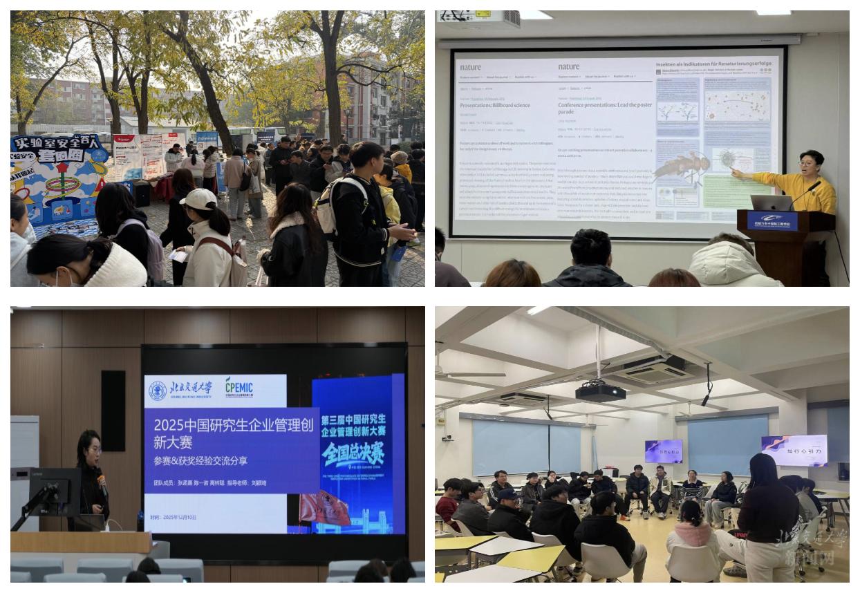 围绕研究生成长成才需求,统筹开展政策解读与能力提升活动。联合图书馆举办专利挖掘、文献解析、知识产权管理等4场专题报告。联合实验室管理处开展实验室安全知识竞赛、嘉年华及短视频创作大赛,吸引近3000人次研究生参与,强化安全意识。机电学院围绕学术海报设计、科研成果表达等关键技能开展专题培训,夯实科研基本功。经管学院、建艺学院通过竞赛经验分享和创新实践交流,引导研究生在真实问题中提升综合分析与实践能力。网安学院举办研究生成长发展政策解读会,并围绕论文写作、文献检索等开展系统化技能培训,全方位助力研究生适应科研生活。
