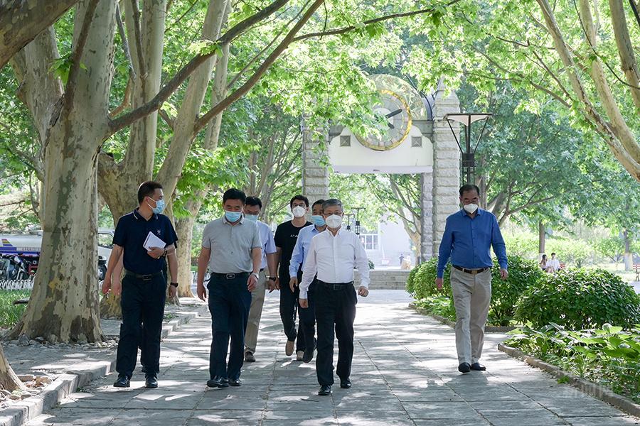 5月21日,黄泰岩一行先后来到学校西北门、南门,快递点、学苑天桥等关键防控区域,听取封闭管理、校园安全、物资保障等相关工作情况汇报。看望慰问了在天佑会堂核酸检测点工作的医护人员和党员教师志愿者。