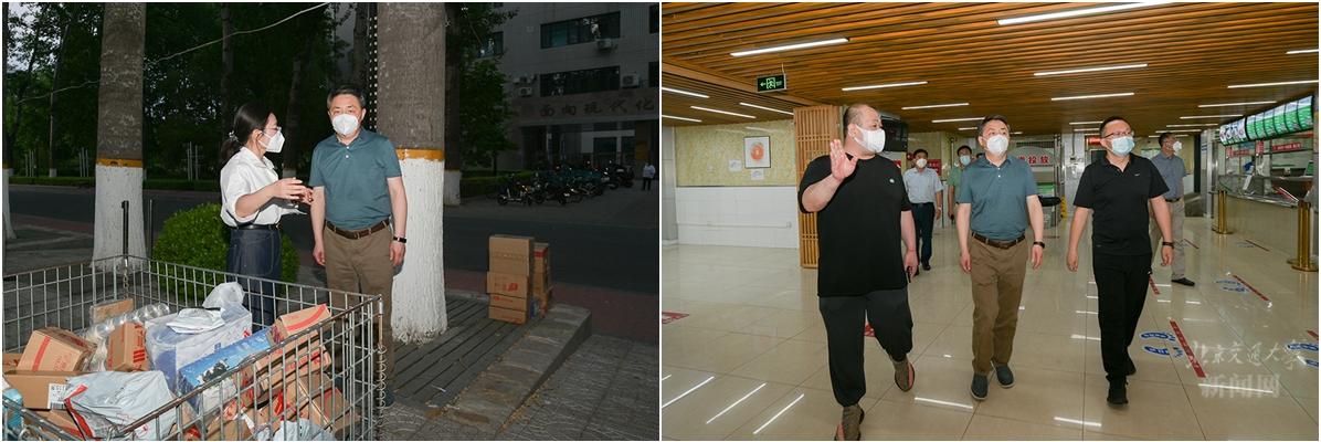 5月22日,王稼琼一行先后来到20号公寓、校内快递点、学苑公寓及食堂等地,听取快递消杀、学生堂食、服务保障等相关工作情况汇报,并看望慰问了住校工作人员。