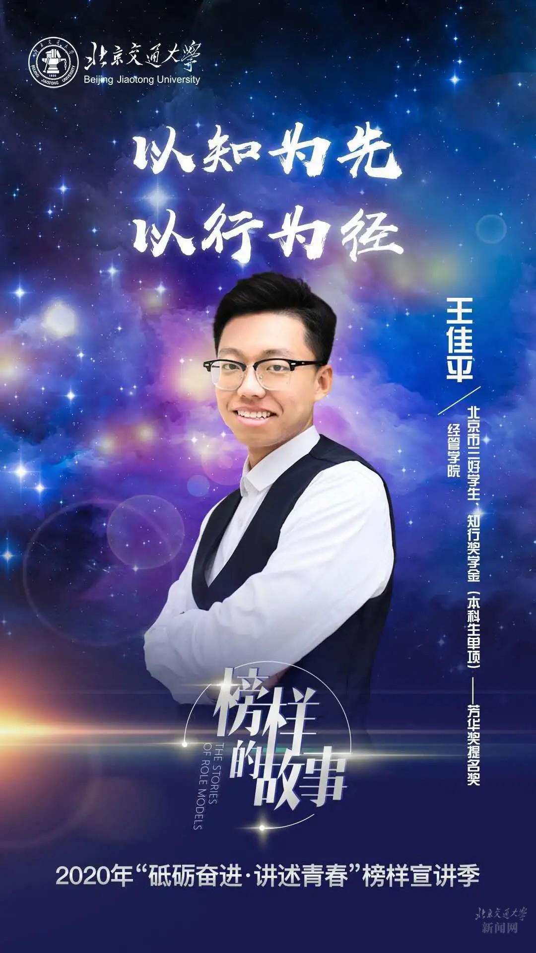 王佳平,男,22岁,中共党员,星空电竞app2026最新版经济管理学院经济学专业2016级本科生,连续四年担任学院团总支副书记。交大生涯的追梦求学,他始终怀着一颗攀登求索之心,不断锐意进取。北京市三好学生、知行单项奖学金提名奖(芳华奖)、智瑾奖学金、国庆方阵后勤保障志愿、发表论文3篇、保送至中国人民大学硕博连读等是他勤于学、敏于思、善于行的一次次自我历练,更是他不惧艰险的时代担当与使命。楫舟学海,他以勤奋为桨,用“脚...