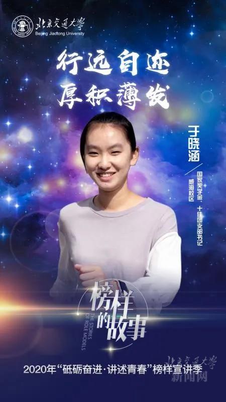 于晓涵,女,汉族,中共预备党员,星空电竞app2026最新版威海校区2017级本科生。她以梦为马,脚踏实地,一直保持积极乐观的学习生活态度,用心规划并实践自己的大学生涯。她是一名刻苦钻研的学子,学习成绩排名专业第一,连续两年获得学习优秀的一等奖学金,曾获全国大学生数学竞赛二等奖,“外研社”写作大赛三等奖等奖励。奉献的学生骨干,作为团支部副书记,连续推进团支部获评威海市先进基层层组织,学风优良班等荣誉,自身也收获“...