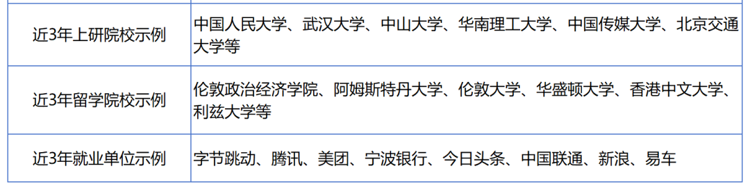 近三年学生获“挑战杯”国赛特等奖等国家级奖项13项。毕业生85%入职中央媒体、互联网大厂及国际机构,起薪与职业发展居全国前列。