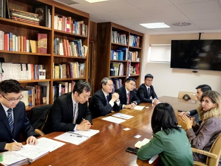 在西班牙访问期间,余祖俊与马德里康普顿斯大学外事副校长Maria del Rosario Cristobal进行会谈。他回顾了两校长期以来的合作历史,感谢马德里康普顿斯大学为我校联合培养项目学生提供良好的学习和生活环境,希望未来在中西两国政府的大力支持下加强轨道交通、新一代信息技术及新能源等领域师生互访、联合培养及协同创新等合作,共同培养既懂语言又懂工程管理及相关技术的复合型人才。