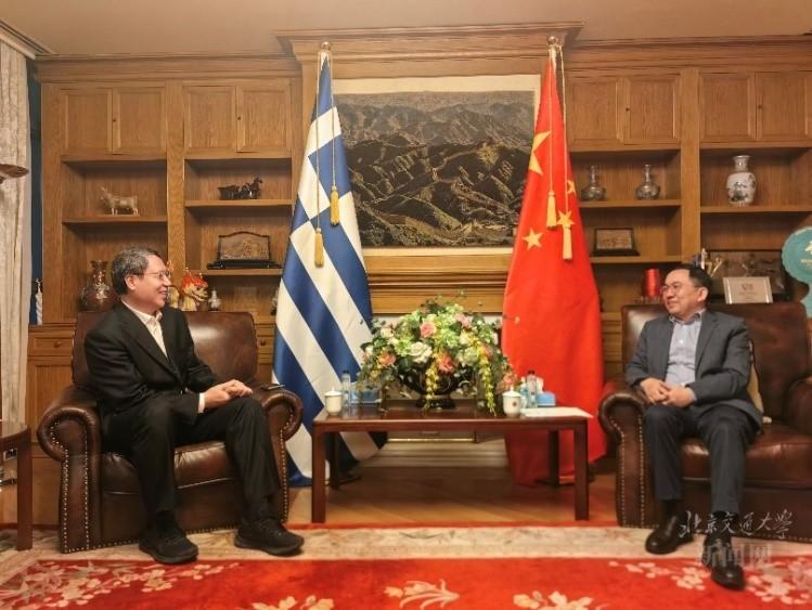在希腊访问期间,代表团一行拜会了中国驻希腊大使馆,余祖俊与中国驻希腊大使方遒就未来加强我校与希腊政府及相关高校、企业协同开展铁路及信息等领域合作进行了深入探讨。
