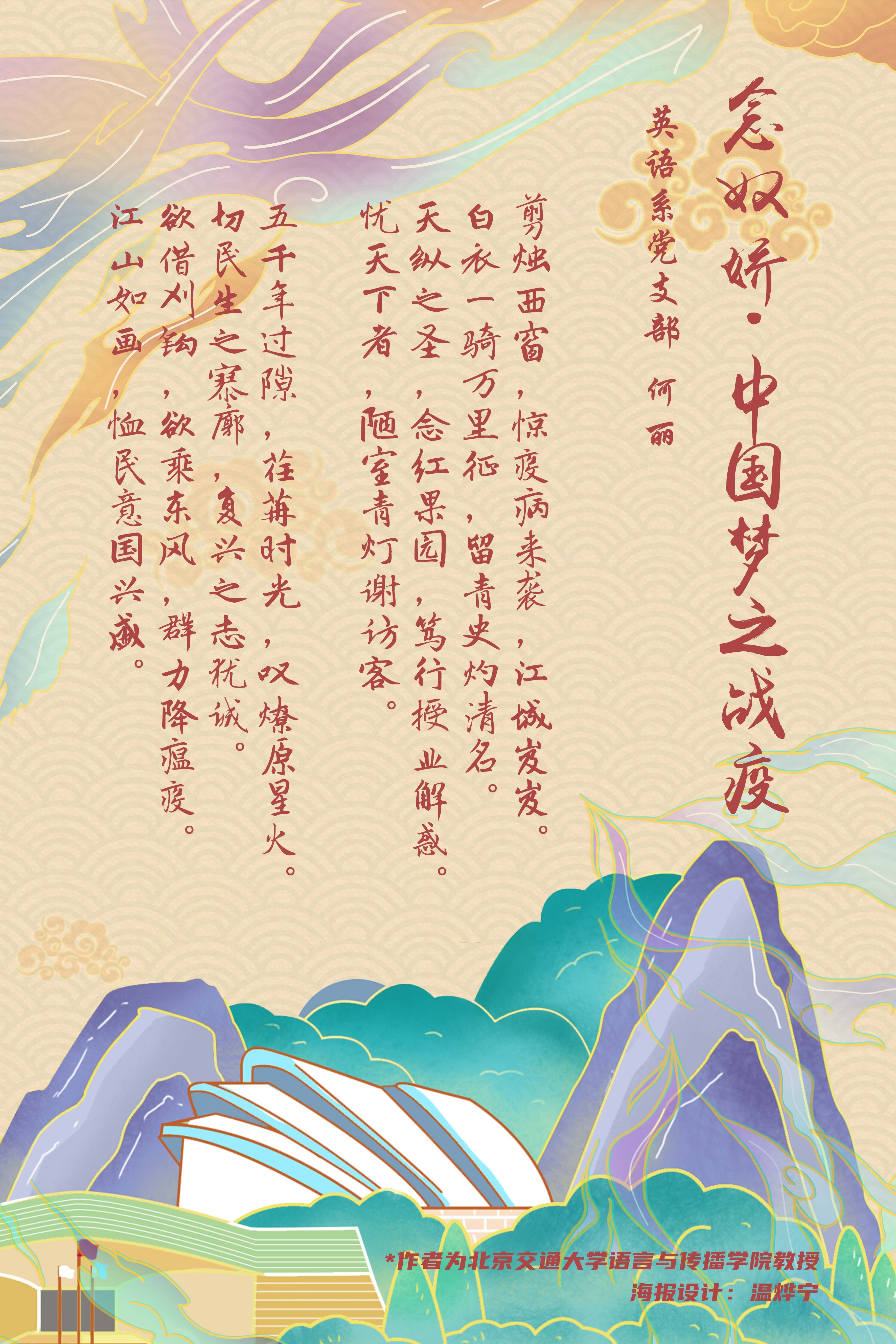 语言与传播学院英语系党支部教师何丽用一首《念奴娇·中国梦之战役》,致敬逆行者,更表达了疫情面前教师的责任与担当。